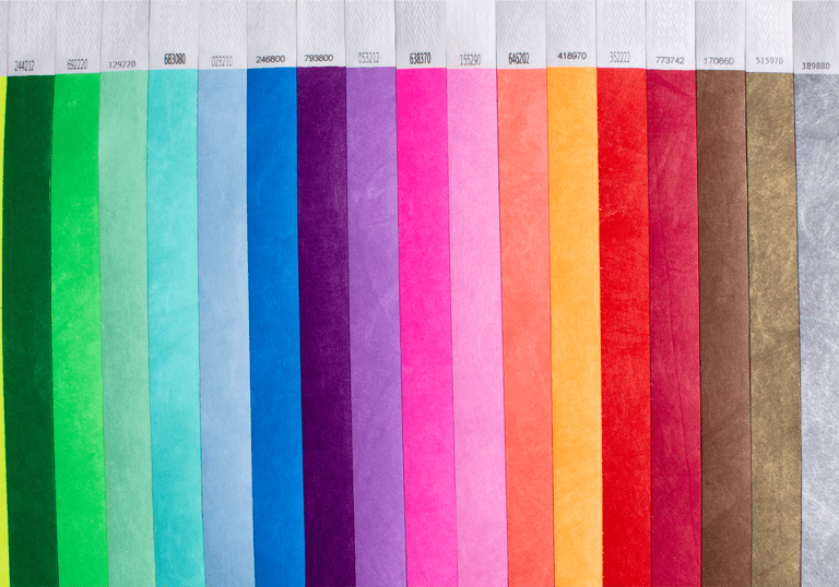 We can also produce our striped Tyvek® wristbands in a 19mm (3/4″) width, however these are made-to-order and therefore are subject to minimum order quantities.